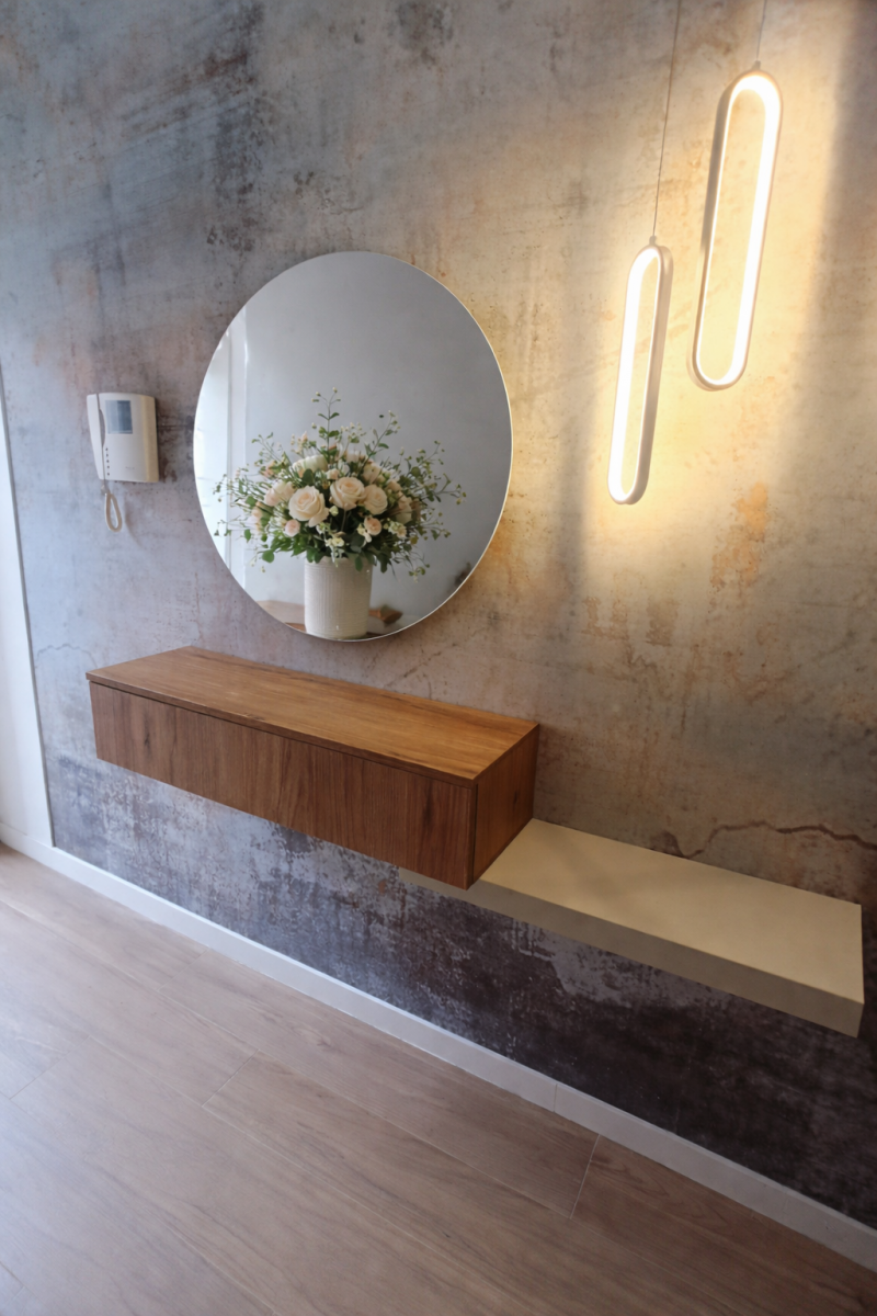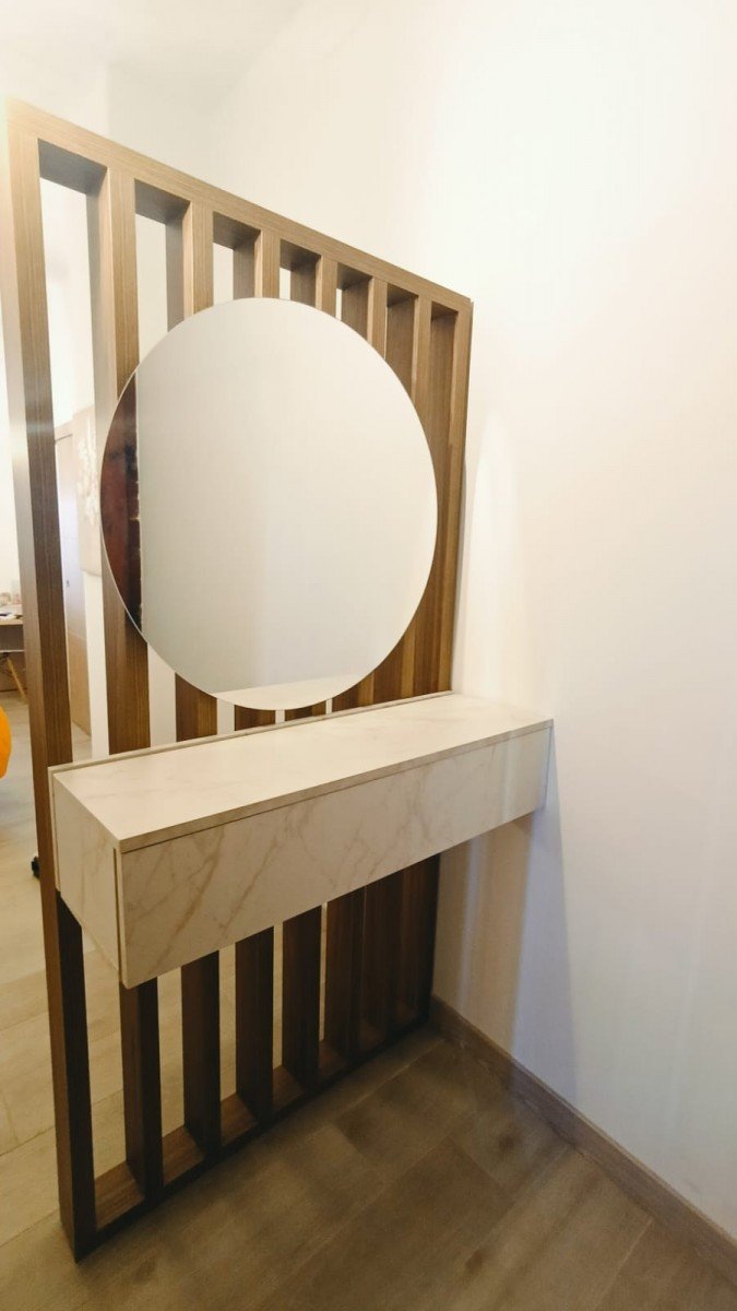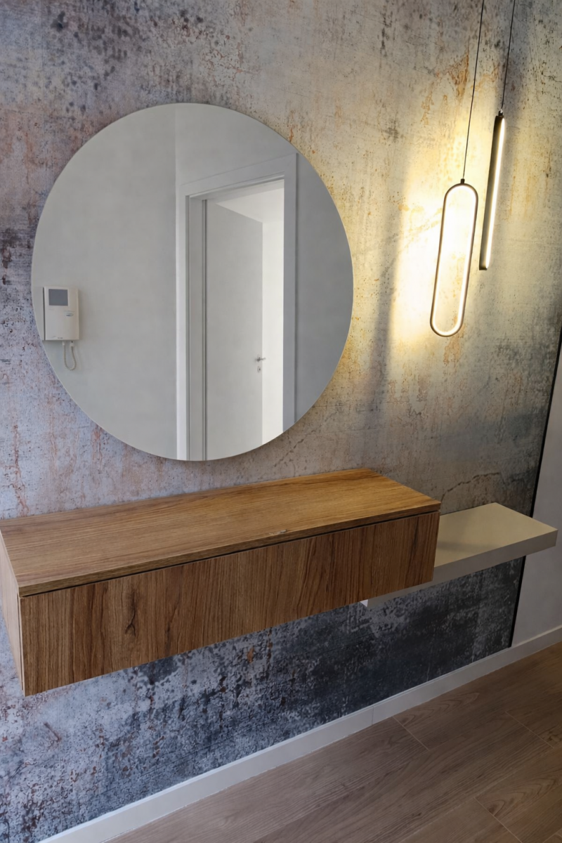 Recibidor para personalizar, ideal entradas pequeñas, puedes elegir la forma del espejo que quieras, para que acople a la perfección en tu entrada.