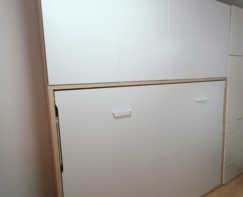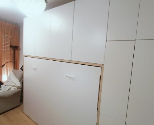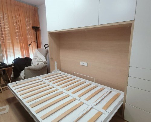 Cada cama abatible que nos piden es un mundo. Si tienes una habitación pequeña, si la quieres con armario, con puente, sola, en vertical u horizontal, con escritorio o con estanterías... ¡no te preocupes! Se puede fabricar con mil opciones distintas, adaptada a tus necesidades.
