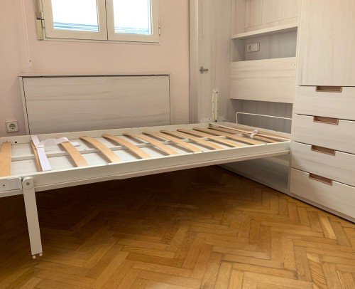 Cada cama abatible que nos piden es un mundo. Si tienes una habitación pequeña, si la quieres con armario, con puente, sola, en vertical u horizontal, con escritorio o con estanterías... ¡no te preocupes! Se puede fabricar con mil opciones distintas, adaptada a tus necesidades.