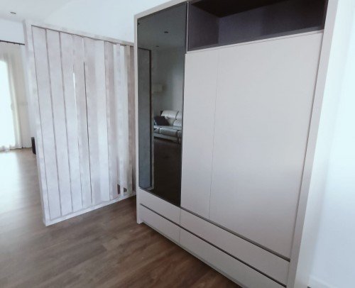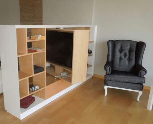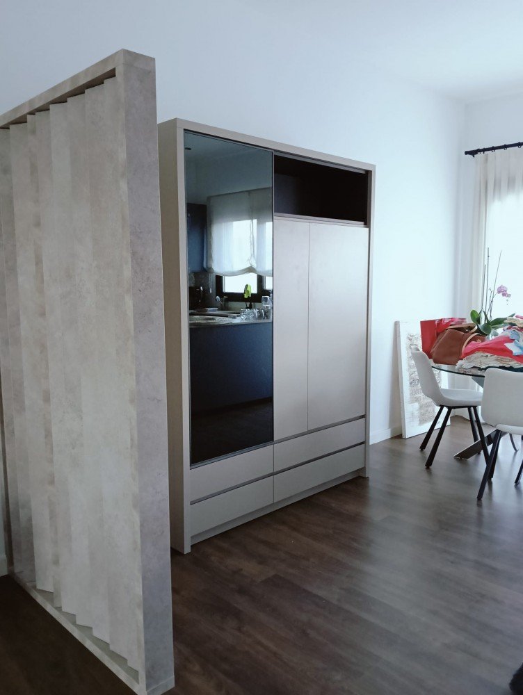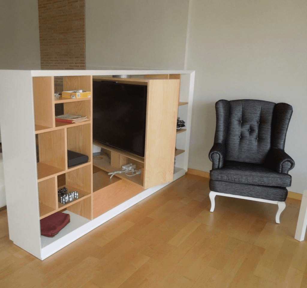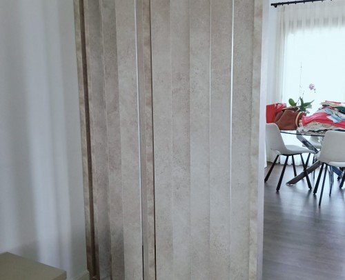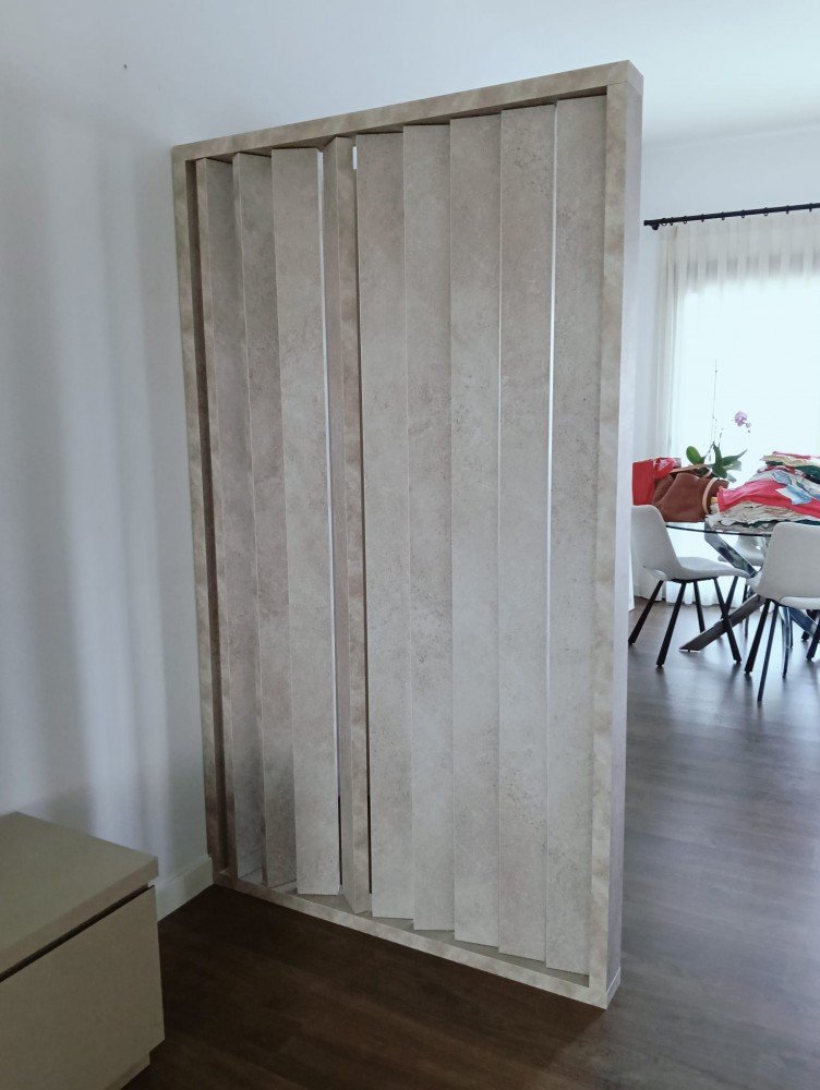 Los separadores que ofrecemos son estructuras hechas con listones verticales de madera, dispuestos de manera paralela y montados sobre un eje que permite girarlos. Actúan como filtros visuales entre ambientes, sin bloquear totalmente la luz ni el aire.