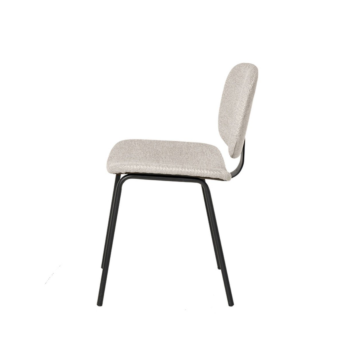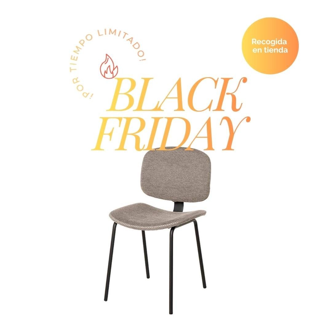 Pack de cuatro sillas tapizadas con estructura de acero y patas en color negro. En este pack cada una sale: 54,50€