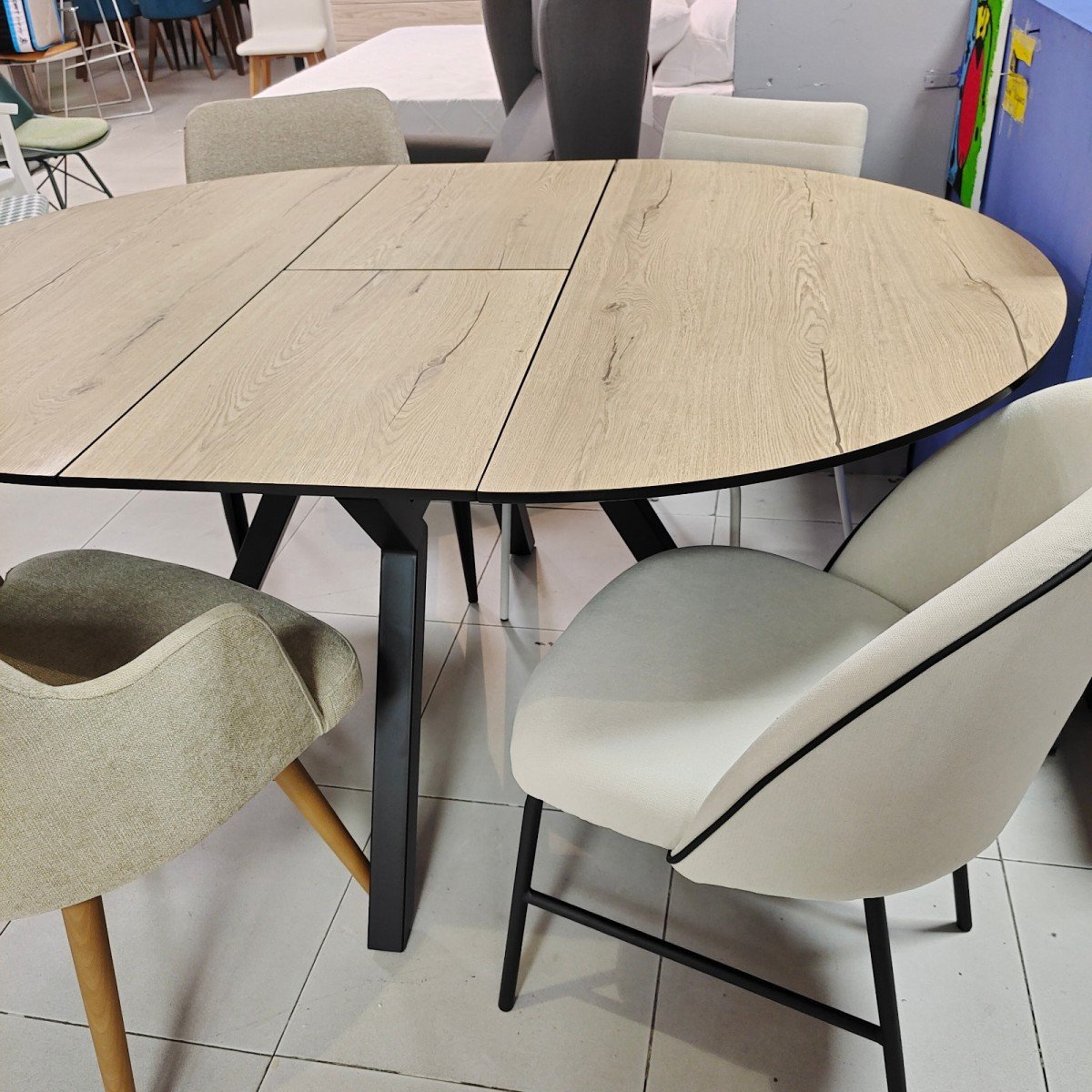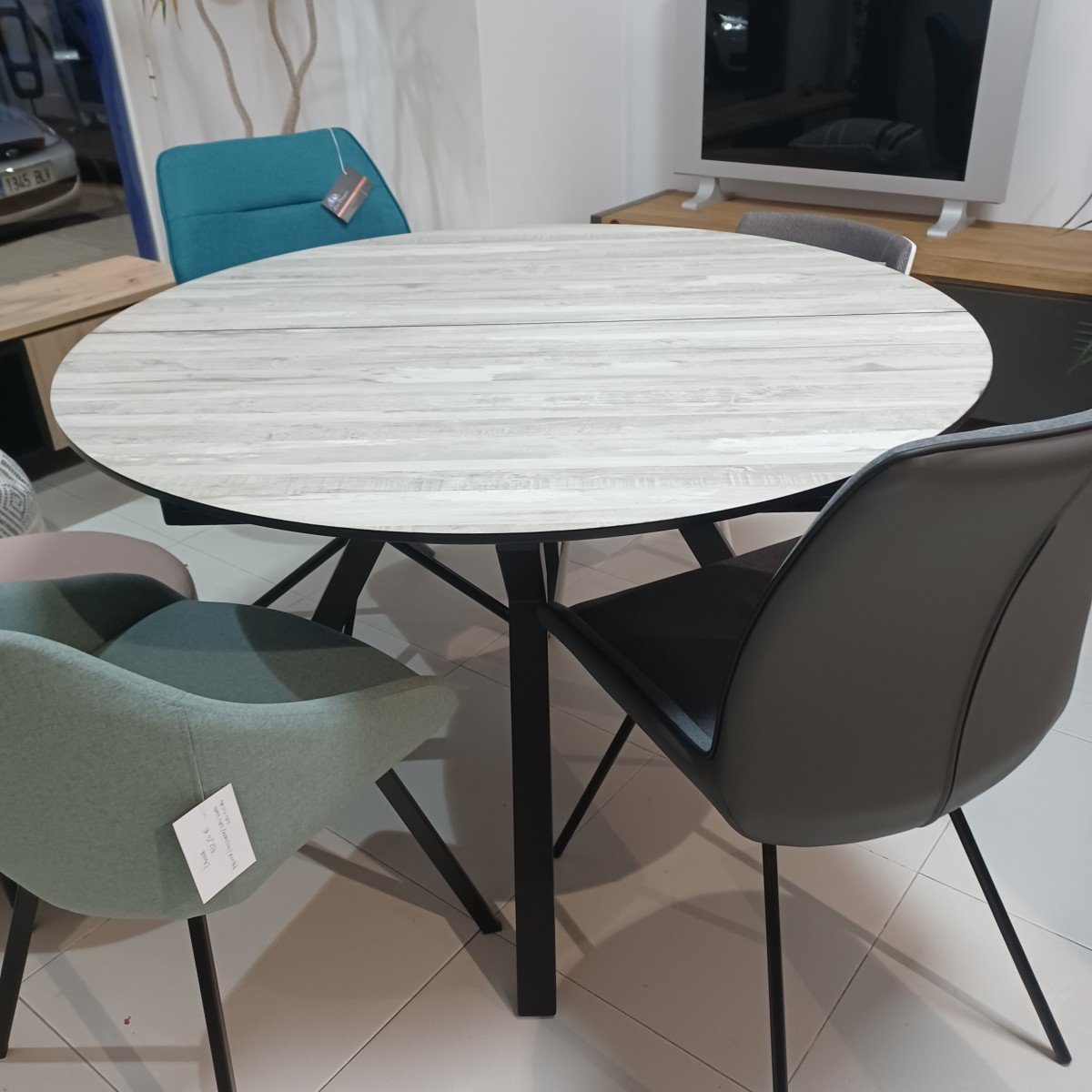 Bonita mesa de comedor extensible, acabado en diseño de madera, disponible en varios colores de tapas, si tienes dudas consultanos.
