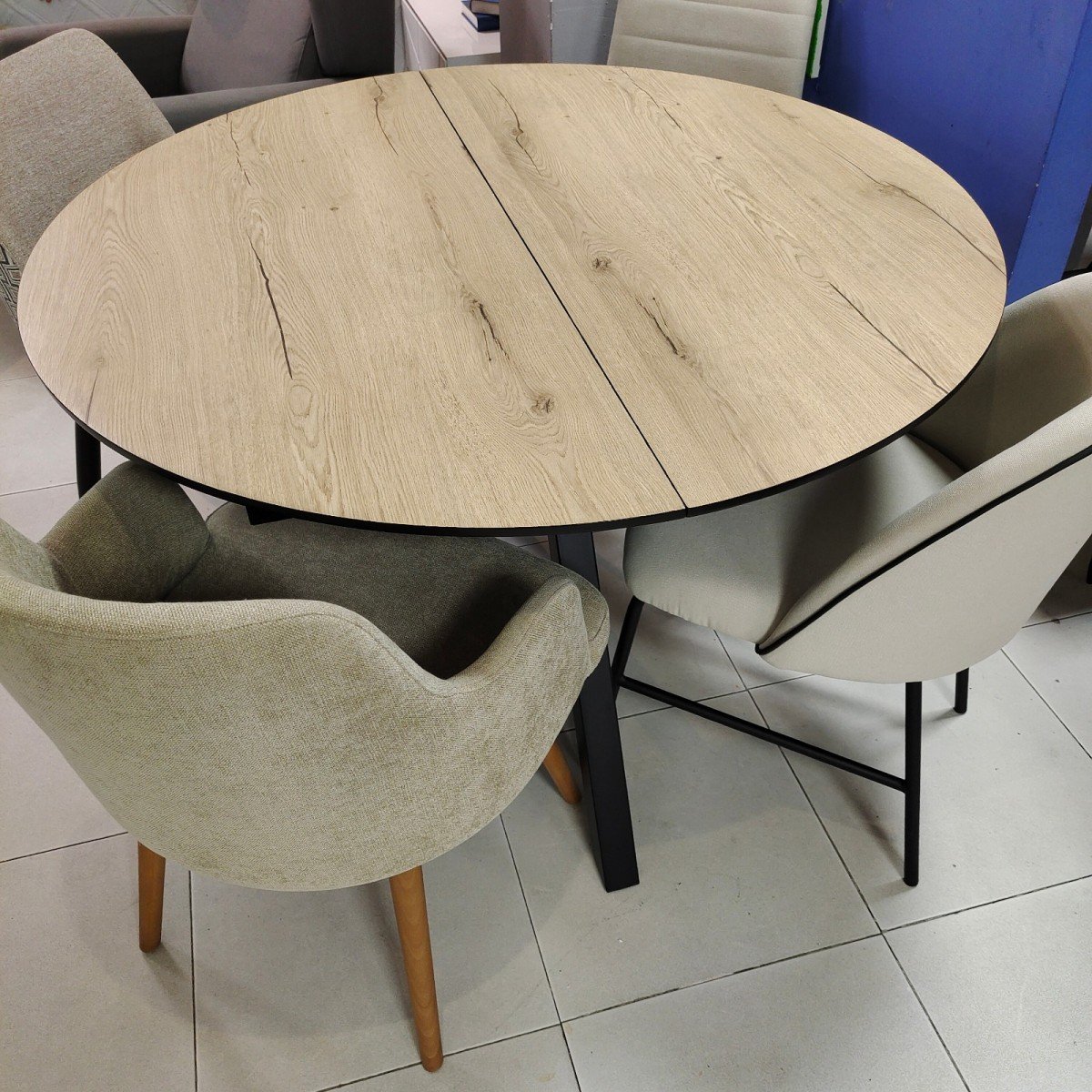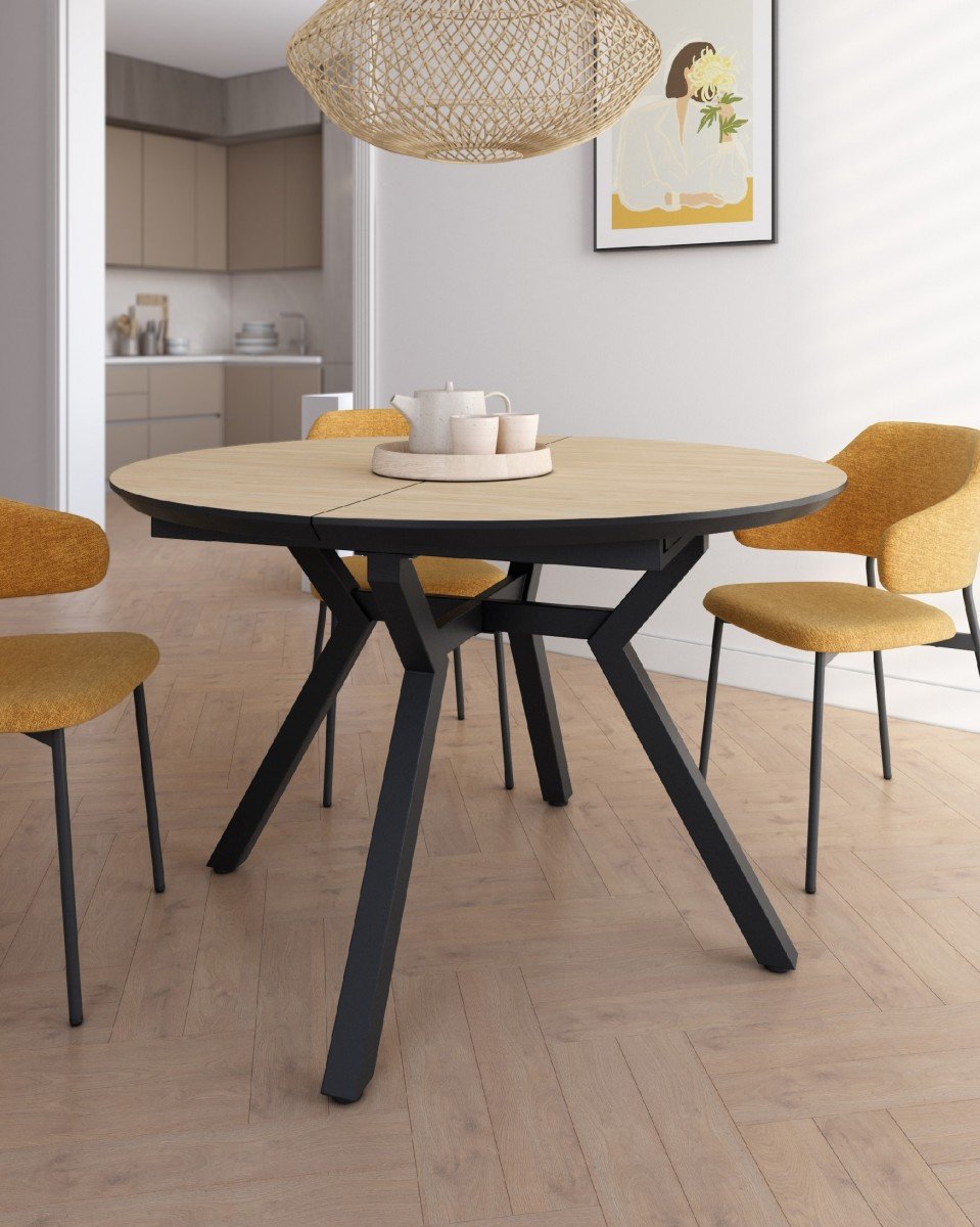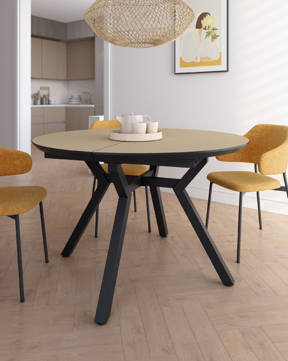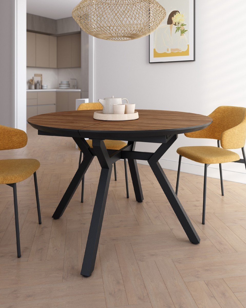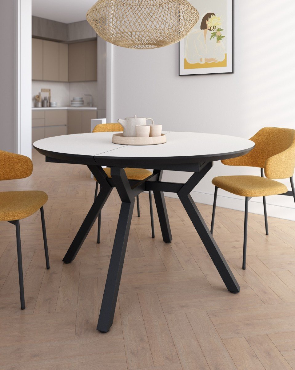 Mesa redonda de comedor, especial para hogares modernos, medida de 100 Ø abierta a 130 Ø