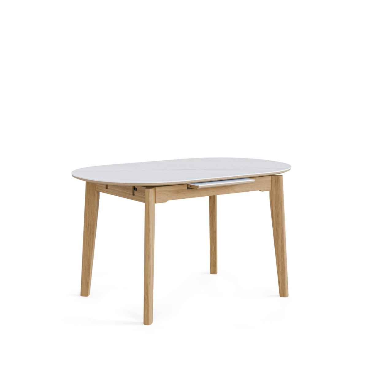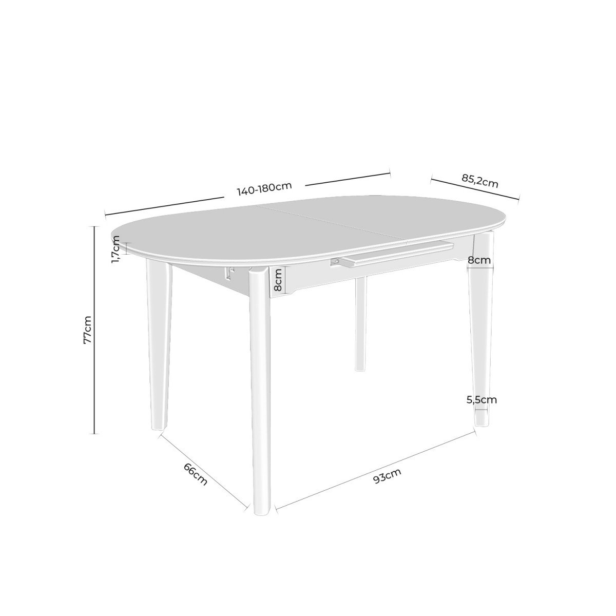 De forma ovalada y diseño ligero, incorpora un sistema extensible que pasa de 140 a 180 cm, adaptándose fácilmente a distintos momentos, desde cenas íntimas hasta reuniones con más comensales.