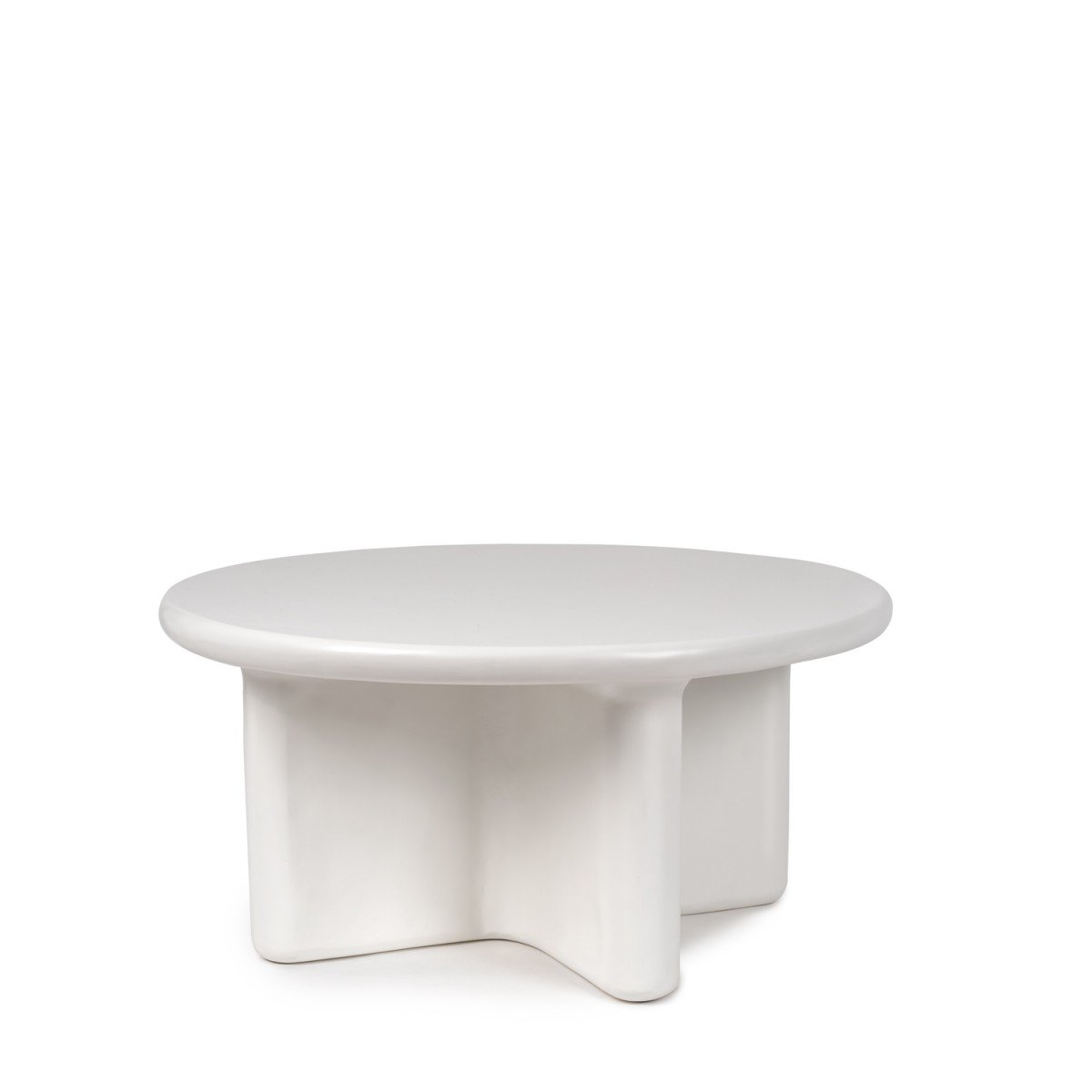 La mesa de centro FLOYD ø80 cm, fabricada en resina, destaca por su diseño escultórico de líneas suaves y forma redondeada, que aporta una estética moderna y equilibrada. Su acabado blanco realza la luminosidad del espacio y refuerza su carácter contemporáneo.