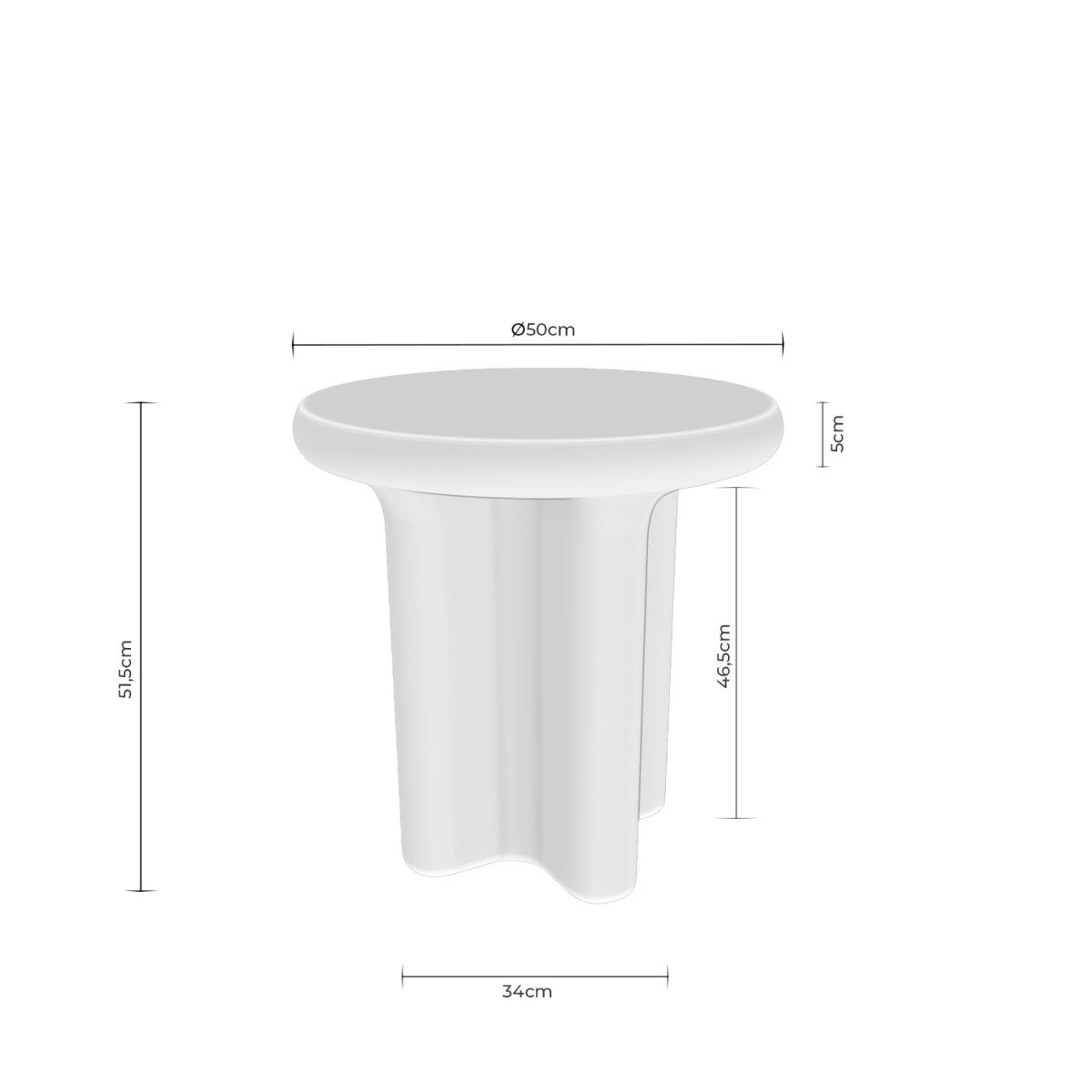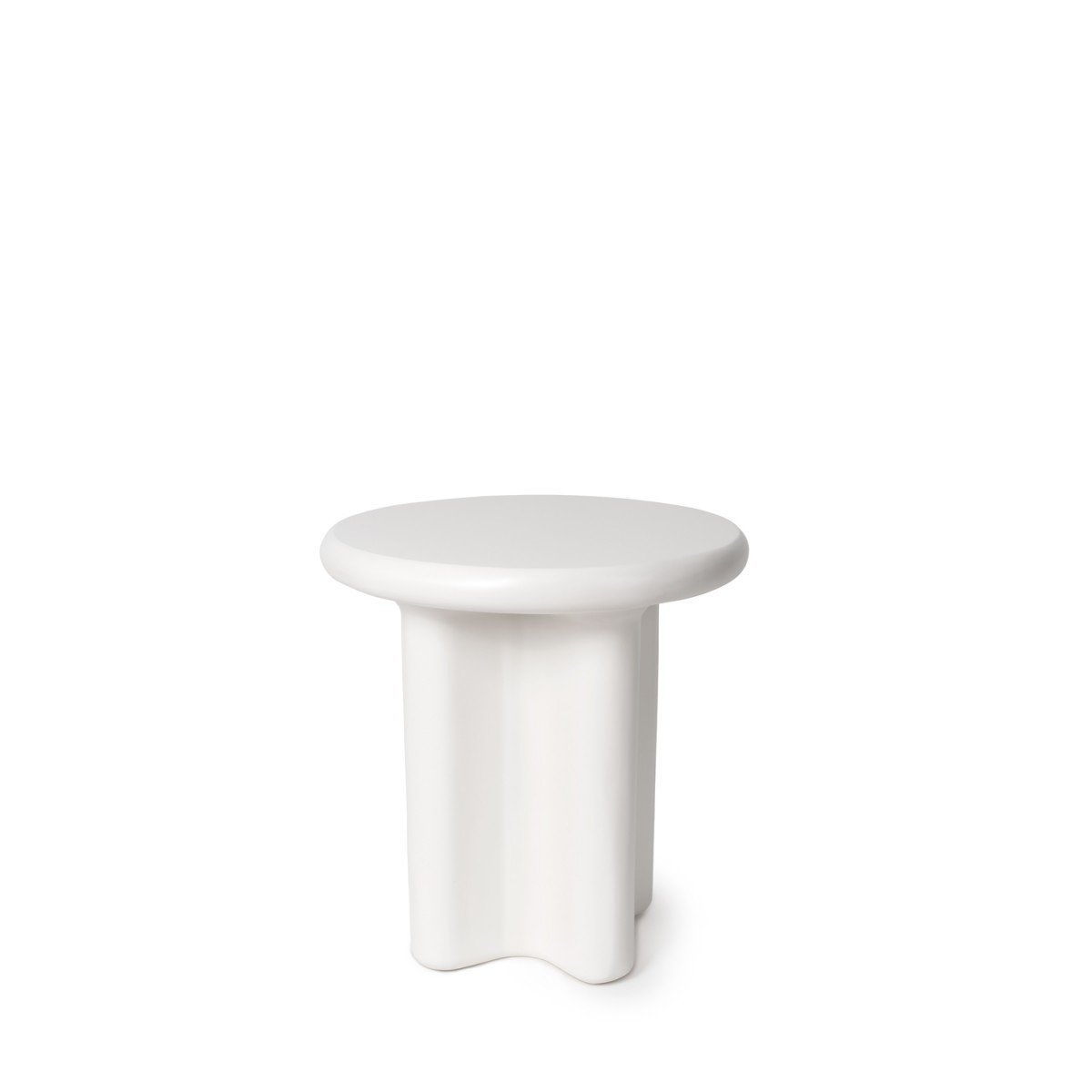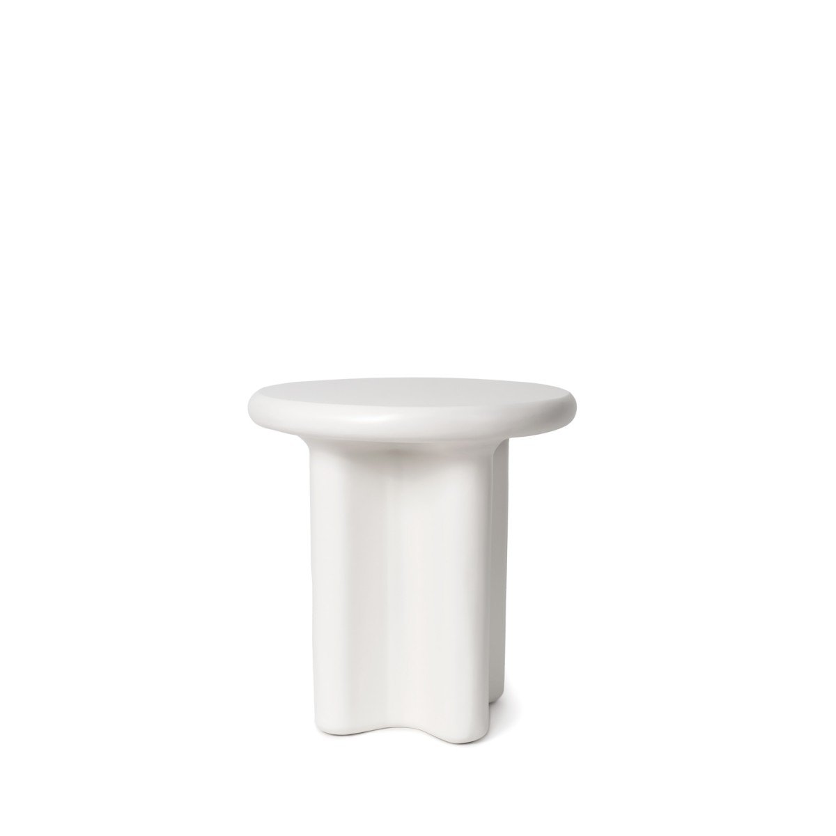 La mesa auxiliar FLOYD mantiene el carácter escultórico de la colección con un diseño compacto y elegante. Fabricada en resina y acabada en blanco, su silueta redondeada y base sólida aportan equilibrio visual y un estilo contemporáneo muy marcado.