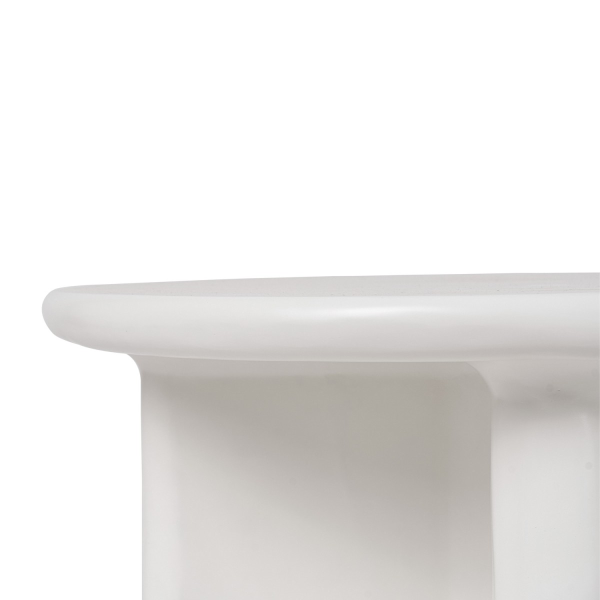 La mesa de centro FLOYD ø80 cm, fabricada en resina, destaca por su diseño escultórico de líneas suaves y forma redondeada, que aporta una estética moderna y equilibrada. Su acabado blanco realza la luminosidad del espacio y refuerza su carácter contemporáneo.
