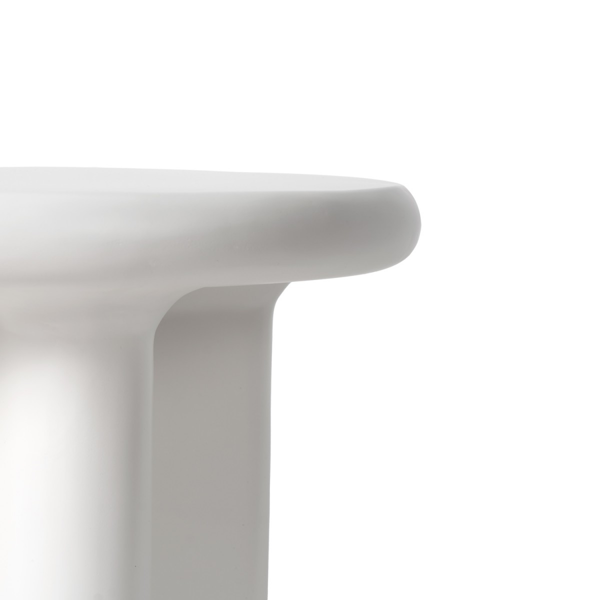 La mesa auxiliar FLOYD mantiene el carácter escultórico de la colección con un diseño compacto y elegante. Fabricada en resina y acabada en blanco, su silueta redondeada y base sólida aportan equilibrio visual y un estilo contemporáneo muy marcado.