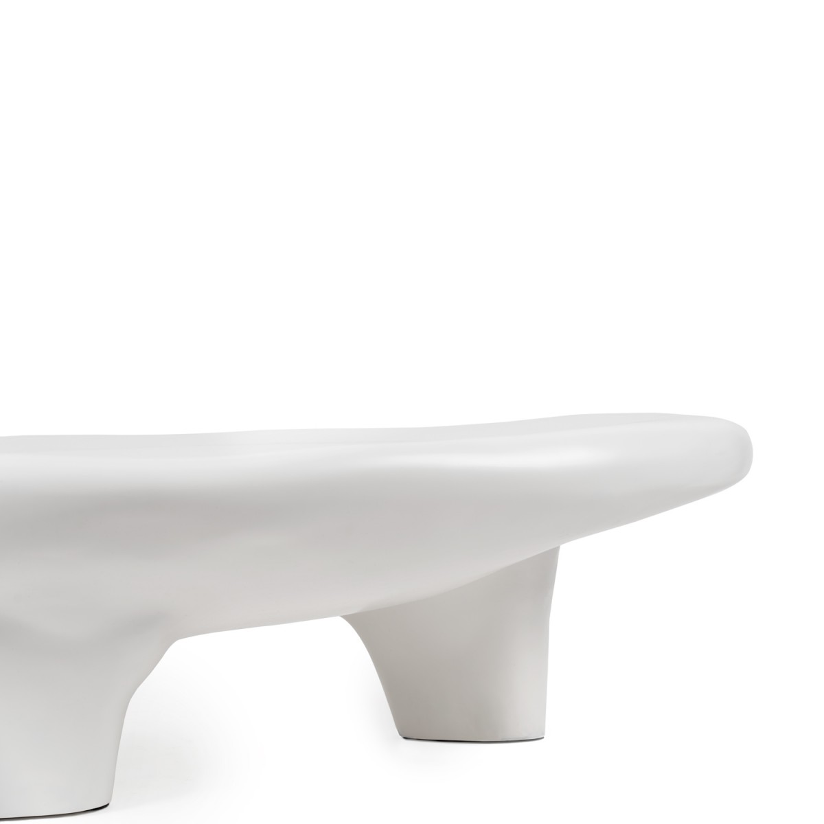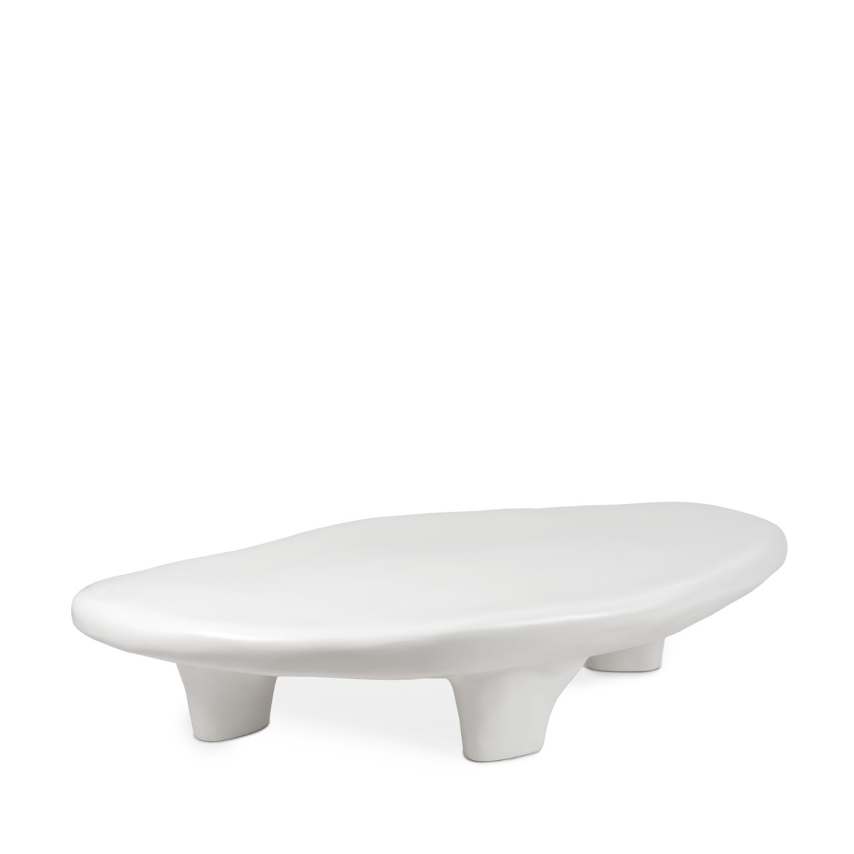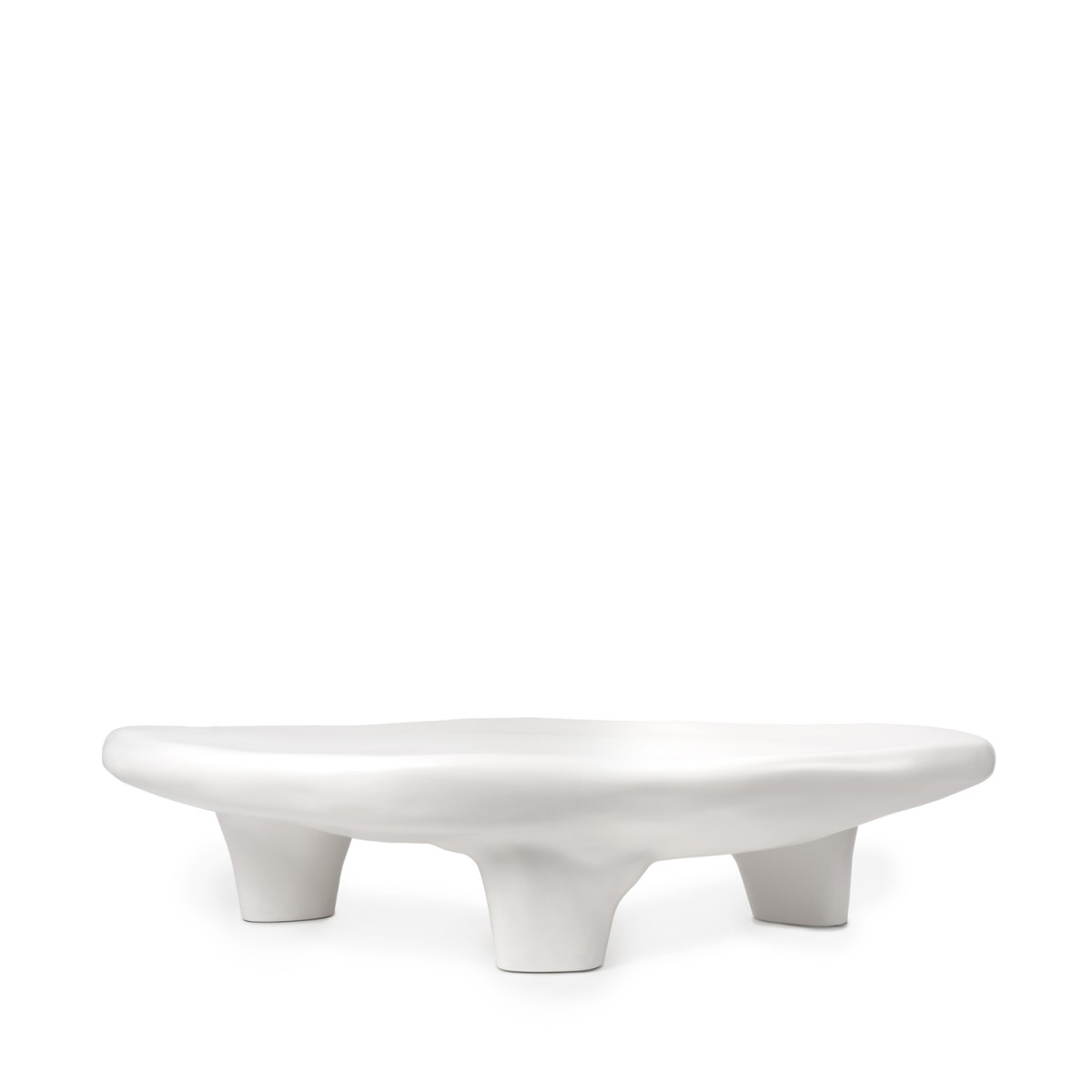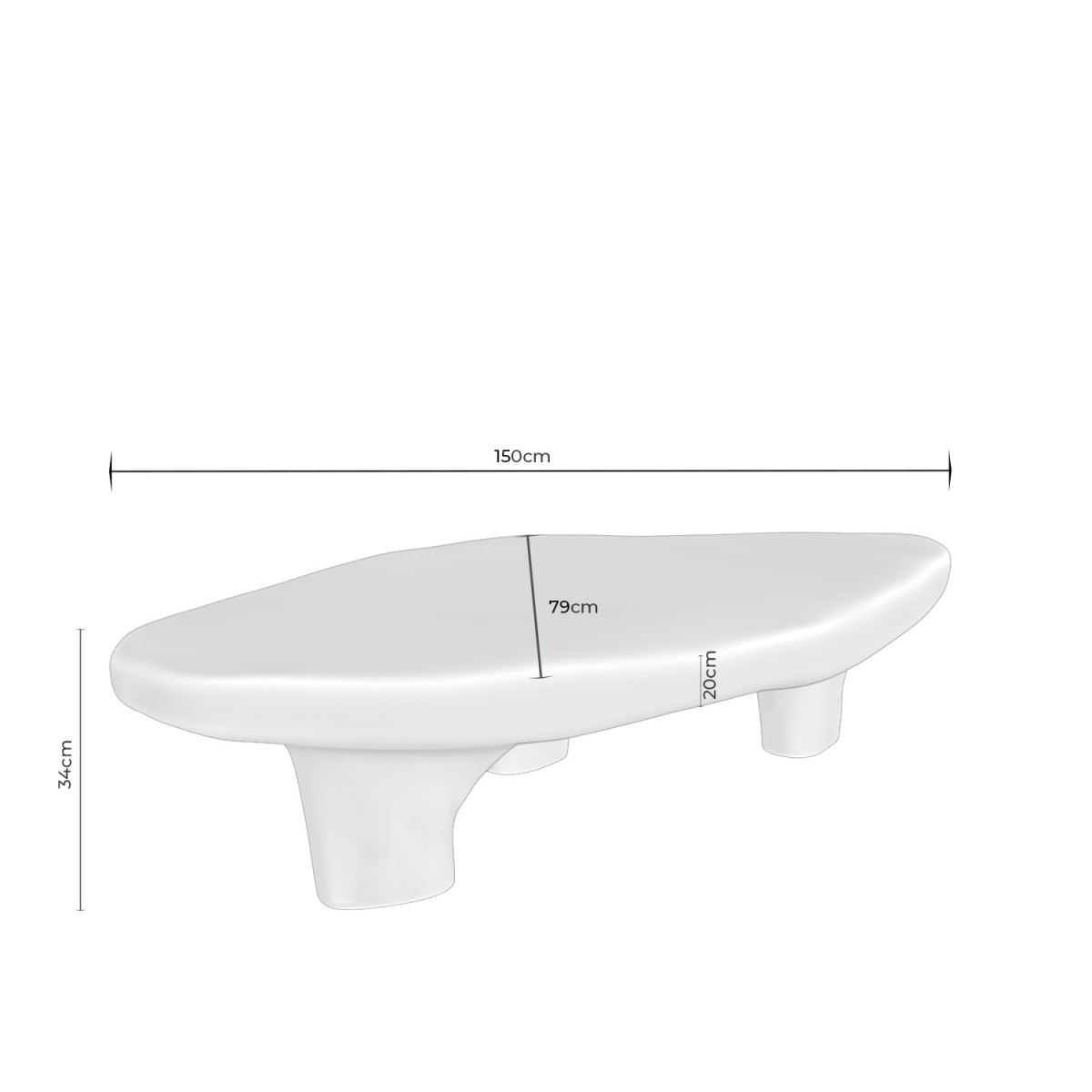 La mesa de centro INA se caracteriza por un diseño orgánico y muy expresivo, con tapa y patas de formas irregulares que rompen con la simetría tradicional. Sus volúmenes suaves y no uniformes evocan siluetas naturales, convirtiéndola en una pieza con fuerte presencia visual y un aire casi escultórico.