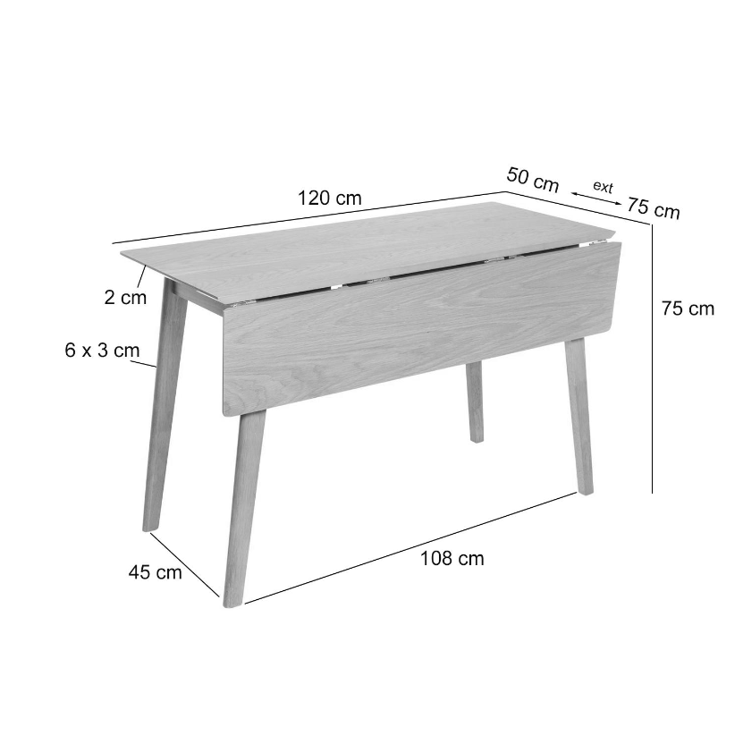 Mesa con un ingenioso sistema abatible: con solo un movimiento, su fondo pasa de 50 a 75 cm, permitiéndote ampliar la superficie según tus necesidades. Perfecta como mesa auxiliar en cocinas, rincones de desayuno, zonas de trabajo o incluso espacios reducidos que requieren optimizar cada metro cuadrado con inteligencia.